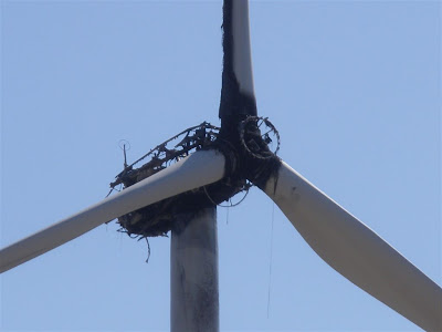 Aqui nesta foto pode-se ver o estado de destruição em que ficou uma turbina instalada em Portugal, com uma faísca que lhe caiu em cima, há dias. Um prejuízo de talvez meio milhão de €...!Claro que a tecnologia tem soluções para proteger as turbinas destes acidentes, embora por todo o mundo se verifique uma elevada taxa de destruição de turbinas eólicas pela trovoada.